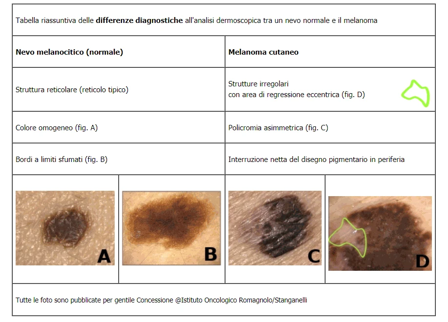 L’autoesame da parte del paziente o con l’aiuto dei familiari permette di diagnosticare la maggior parte dei melanomi ed è considerato un fattore predittivo per il melanoma con spessore sottile. Il riconoscimento clinico della “lesione sospetta” e l’identificazione dei pazienti a rischio per un monitoraggio periodico presso il centro di riferimento specialistico rimangono i punti fermi per la diagnosi precoce. Nella valutazione d’ogni lesione il dermatologo è tenuto ad applicare il percorso diagnostico completo che deve prendere in considerazione tutti i parametri anamnestici, clinici e dermatoscopici. Infatti, la dermatoscopia non può prescindere dall’esame dei parametri clinici, quali l'età del paziente, il fototipo, il numero e la tipologia degli altri nevi, la sede e la storia evolutiva della lesione, etc. che sono in grado di aumentare l’accuratezza della diagnosi finale. Il monitoraggio digitale è utile nella gestione dei pazienti con numerosi nevi atipici mentre i sistemi computerizzati di diagnosi assistita vengono implementati come supporto oggettivo per la valutazione delle caratteristiche clinico-dermoscopiche. Infine la nuova applicazione della microscopia confocale correlata a parametri quasi istologici definisce nuovi criteri diagnostici nella identificazione dei nevi melanocitici, del melanoma in fase iniziale, delle lesioni non melanocitiche e permette di studiare in vivo la biologia e la dinamica delle neoformazioni analizzate.